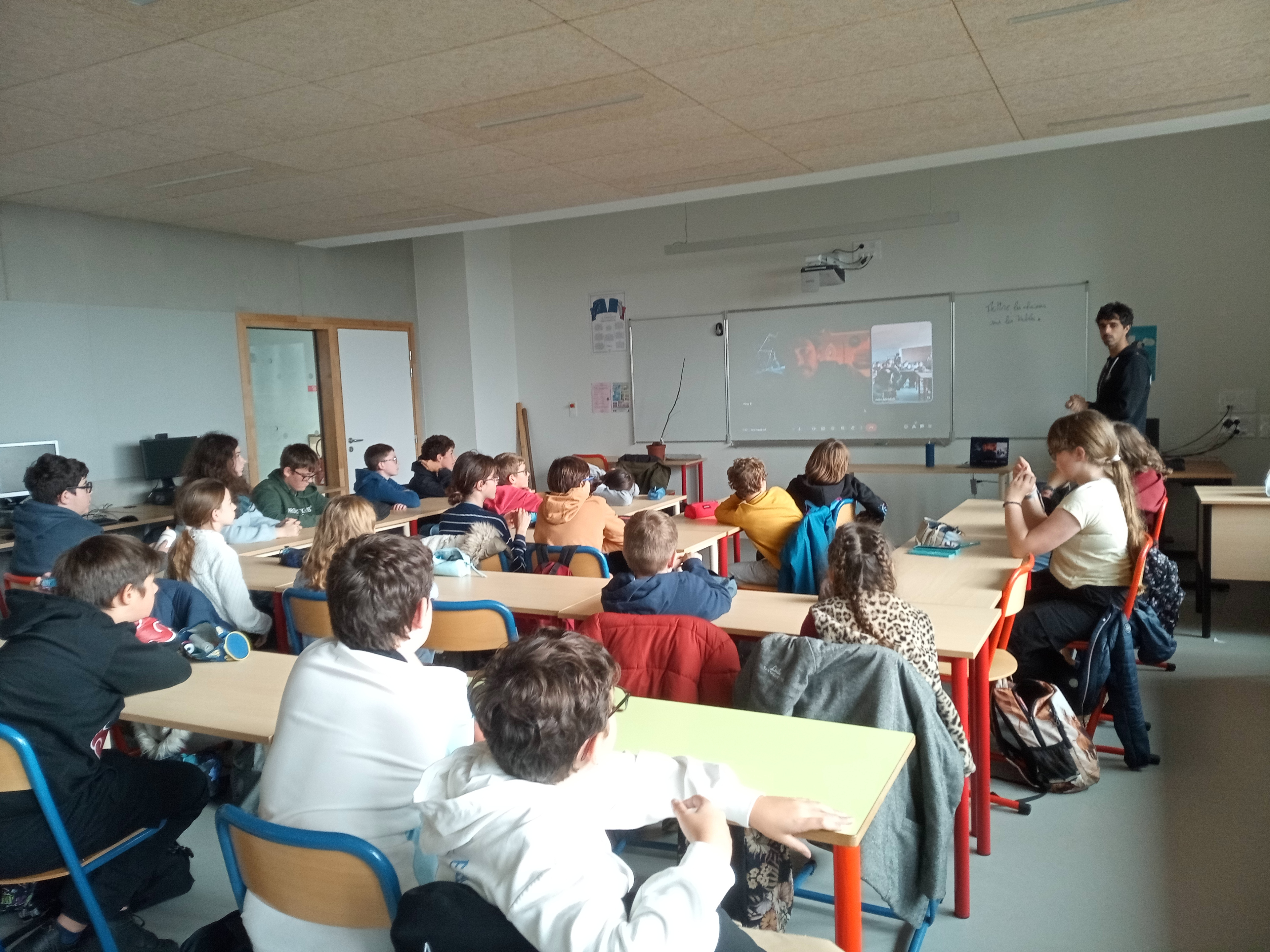 Les élèves ont pu assisté à une visioconférence avec Victor Rault, fondateur de l’expédition Captain Darwin, actuellement en voyage autour du monde pour documenter les effets du changement climatique sur la biodiversité.