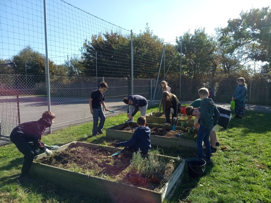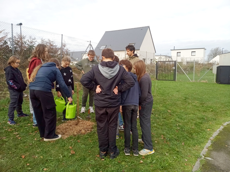 À l’issue de cet échange, 25 arbres et arbustes ont été plantés dans la cour du collège, pour favoriser l’accueil des chauves-souris et d’autres espèces.