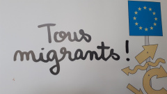 « Tous migrants ! » est composée de treize kakémonos (panneaux de format 100 x 200 cm) déroulants. Cette exposition retrace le parcours complexe des migrants à travers des dessins de presse du monde entier. Des raisons du départ au processus d’intégration dans un nouveau pays, en passant par les obstacles rencontrés durant leur voyage, les dessinateurs de presse analysent en quelques traits cet enjeu majeur pour nos sociétés. Au fil des panneaux thématiques, leurs coups de crayon cassent les préjugés, dénoncent le rejet de l’étranger et montrent l’apport et la richesse de la diversité.